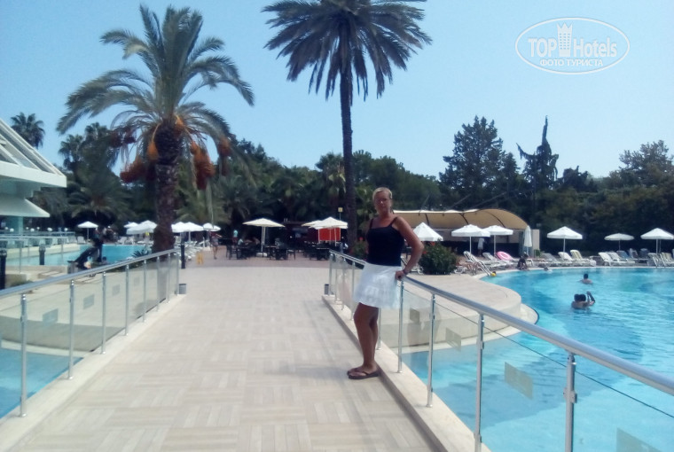 В этом отеле были первый раз,(хотя в Турции 7раз, сравнивать есть с чем), выбирали 5*подешевле, но чтобы первая линия. Если честно, то за такие деньги даже не надеялись на что-то приличное, а почитавши отзывы поняли что будет все ужасно! Но оказалось что зря расстраивались))) нам очень понравилось!!! Очень красивая, аккуратная территория, близко от корпуса к пляжу, правда бунгало находятся на второй линии через надземный переход, но у них там есть бассейн с небольшими горками (возле корпуса бассейн без горок) и бар, а на море и в ресторан покушать далековато, но зато там тишина))). Питание было вкусное, свежее, разнообразное, всегда можно что-то подобрать на свой вкус, были и такие кому не нравилось, но им надо было ехать в Rixos)). Один раз были в аля карт ресторане рыбном, вкусно, но очень много еды))). На день рождения в номер принесли бутылку вина и фрукты, можно было еще и торт в подарок, но я не люблю торты)) и мы отказались. Аниматоры каждый вечер организовывали программу, каждый раз разную (то живая музыка, то фокусники, то выступление акробатов и танцоров, то пенная вечеринка на пляже), детская дискотека каждый вечер, днем йога и аквааэробика. Не знаю кому как, но нам очень понравилось все(кроме уборки номера, после оставленных чаевых, на след. день вообще не приходила уборщица))) И еще в отеле ооочень много отдыхающих!!! На обеде, ужине и в барах - очереди!!)), на пляже и у бассейна шезлонги к 8 утра все заняты)))