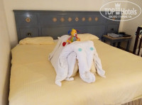 Отдыхали с маленьким ребенком. Сначала нас поселили в корпусе 38 на 3-м этаже, но мы попросили переселить на первый так как с коляской было не удобно подниматься на 3-й этаж. Переселили очень быстро и в тот же день. Новый корпус оказался чуть ближе к основному ресторану и к морю. Номер 14107 (то есть дом 14, номер 107) чисто и уютно. В тот же день нам принесли детскую кроватку, которую мы просили еще при оформлении путевки. Номер убирали каждый день. Муж оставлял горничному доллар просто в знак благодарности, а тот нам каждый день проявлял фантазию с оформлением кровати делая из полотенец то слона, то черепаху, то змею то еще кого-то и посыпал лепестками цветов. Мы заходя после моря в номер уже знали, что на кровати нас ждет что-то интересное. А ребенок был в восторге.)