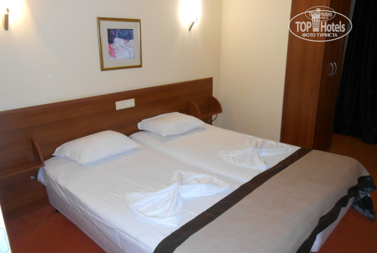 Была первый раз в Болгарии. Долго выбирала место и отель не меньше 4 звезд с лечением. Самолет задержался на 10 часов, прилетела поздно ночью. Попросила с видом на море-заселила милая девушка.В номере стоял ужин на столе и бутылка воды, что было приятно.Чисто. Скромно. Просто. Но было 2 кровати и балкон маленький со столиком , стульчиками и сушилкой. Обязательно возьмите прищепки. Убирались каждый день, меняли полотенца. Правда однажды оставили 2 полотенца, но сходив на ресепшен-напомнила , что у них 4 звезды..и все исправили.Мыло , шампунь, гель и палочки -постоянно подкладывали. Сейф внизу платный, но как то не понадобился..Персонал приветлив, все улыбаются. Медсестра выдала халат, потом- пару раз меняли на свежий. Была бесплатная консультация врача, после чего назначены процедуры. Но это на ваше усмотрение. Цены на них высоковаты. Рядом намного дешевле. Но здесь везде чистота и внимательный мед. персонал, что меня очень устраивало. Им отдельное спасибо.Бесплатно: очень хорошая соляная комната, сауны все всегда работали, хороший тренажерный зал, правда туда не дошла.Бассейн с морской водой маленький, но в самое пекло там поплавать можно, а затем в сауну погреться.