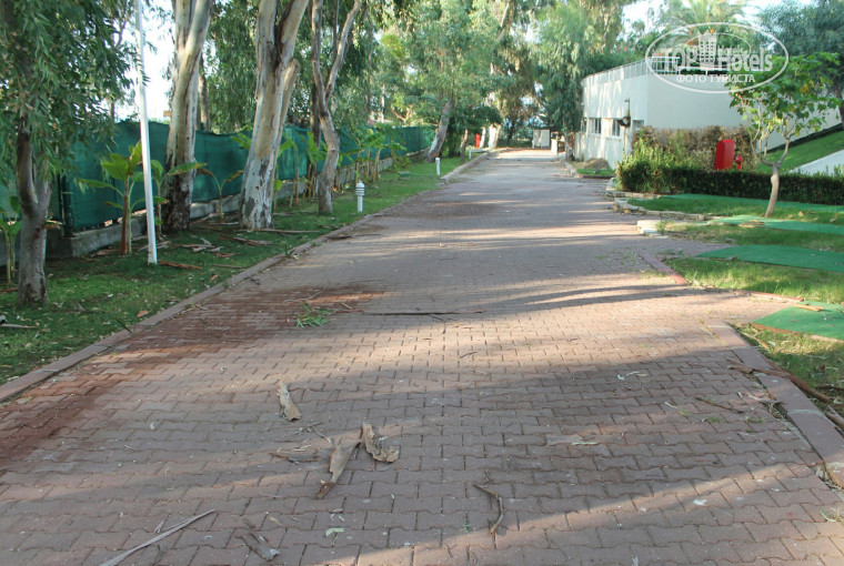 Территория отеля хорошая, но местами не ухожена. Около номеров на окраине отеля не подметают (после наших претензий подмели 1 раз). Мы в Турции 5й раз, не привередничаем - просто есть с чем сравнить. Одна девушка писала в отзывах о чистоте и я вынуждена согласиться с ней. В ресторане рядом с детской площадкой постоянно валяется мусор, я понимаю, что люди свинячат, но это ведь нужно убирать, тем более дети многие все поднимают. Детские стульчики поломаны преимущественно. Иногда кажется, что отель в неком запустении - в ресторане "высохшие" водопадики, пустые места под бары (раньше, видимо, работали они). В остальном - прекрасная территория с большими бассейнами, над детским есть навес, хорошие горки.
