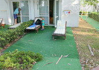 Заселили нас сразу, два номера рядом, оба с террасами. Сразу шокировали раздельные кровати, помимо них одна двухъярусная и детская для малыша. Территория около номера не убрана, валяются банановые листья, о которые ребенок спотыкается, да и ощущение, что на хоз.двор поселили. С коляской пройти сложно, лестница без пандуса. Номер обещали поменять на след.день. На ресепшн девушка уже другая начала говорить, что нет номеров. В общем, обратились мы сразу к Ярославе, про которую так много хорошего писали в отзывах. И не зря. Великолепный менеджер, да и человек хороший. Нас переселили в хороший номер, ребенок постоянно бегал по газону, и с коляской везде дойти можно, не таща на себе. Но номера все простенькие и сильно не новые, номерной фонд слаб.