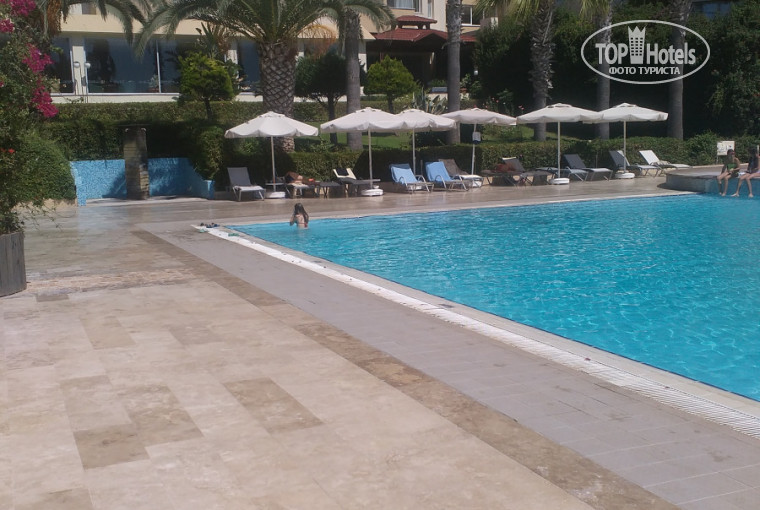 Отель выбрали по предложениям туроператора и времени на раздумия не было!Почитав отзывы,решили по пробывать поехать и не пожалели!Так как я была одна и чтоб получилось дешевле стала искать попутчиц через интернет!Мне повезло,нашла даже двух!!!И нам вышла поездка даже дешевле,чем мы бы заплатили за двоих!Вылет был в 6.15,в отеле мы были уже к 11,30.Дорога из Даламана примерно 2 часа,с одной остановкой.Приехало нас аж 3 автобуса и заселение растянулось до 13 часов,номера не были готовы!Но мы не теряли время заполнили анкету,сдали и оставив вещи в камере хранения(там же переоделись)пошли на пляж!
