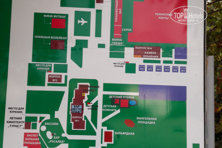 Территория - большая, неухоженная, километры асфальта. Спортивные площадки в запущенном состоянии. Бассейн мелкий, глубиной наверно 1,2м., хлорированный, с 13 до 14 тех.перерыв, при этом всех выгоняют.