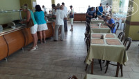 Питание - шведский стол. Из еды только овощи(помидоры, огурцы не первой свежести) и гарниры(гречка, рис). Мяса замечено не было. Причем мяса не было на полном серьезе - то что приносили сложно назвать мясом(котлеты из хлеба каждый день 3 раза на завтрак, обед и ужин). Еды всем не хватает, постоянно приходится ждать. Приносят на раздачу подносы, которые становятся пустыми после 3-го человека, причем не из-за того, что много берут, а из-за того что приносят настолько мало что, если принесут пустой поднос, никто и не заметит разницы.