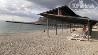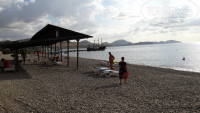 Пляж - общественный, вход свободный, галька. Лежаки для отдыхающих в Приморье бесплатно. Море грязное(но это не вина отеля). Людей очень много, чтобы подойти к морю необходимо обойти всех отдыхающих. Ездили купаться в Тихую бухту(15 мин на авто), там чистое море и отдыхающих не так много.