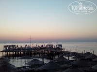 Пляж небольшой, мне понравилось что есть лежаки с зонтами и есть лежаки под большим тентом. Т.е можно просто и в тенечке под тентом лежать. Также есть пирс для любителей понырять.