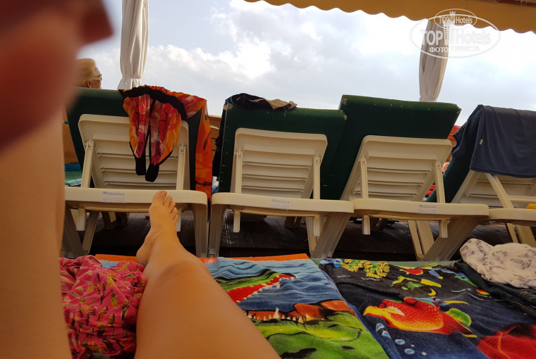 1 это размещение. Отель состоит из отдельно стоящих 5 корпусов. Если Вас разместили в первом то Вам повезло, но так везет иностранцам и туркам. Нас разместили в третем где нет не воды не охраны, не чего просто номера. Номера понравились, немного маловаты. Вид на забор не радует. Пляж близко, но место мало. Все лежаки в притык к др.другу. надо приходить утром и заранее оставлять полотенца. Первых два дня мы так не делали из за этого мест не было. Читала по отзывам, что разместят на соседнем. Это не правда. Были очень хорошие отношения с админом пляжа , но он виновато предлогал посидеть за столом у бара ((( на пляже в баре бесплатно только чай, все остальное платно: кофе 2 доллара, коктейль 8 долларов. Питание хорошее, но если сравнить с другими отелями Турции то уступает значительно! Анимации нет вообще. А прогуливаться по торговой улице ну раз ну два и скучно. (Плюс постоянные пристования продавцов магазинов) на данной улице утомляет. Не советую однозначно. Данный отель тратит на рекламу, тур операторам дает выше ставку за клиента не жели другие отели, а так обидно, что поверив тур оператору получил не то, что обещали. Говорили что бар платный на пляже только на алкоголь. Не верте ни водички ни сока нет бесплатного ... у бассеина тоже места мало, так полотенцем надо застолбить заранее. В жтот отель я бы поехала в лет 80 с удовольствием с условием если муж будет так же просыпаться в 7:30 и идти на пляж занимать заранее места.