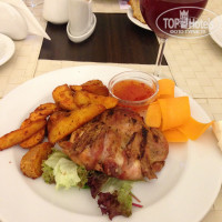 Питание в летел двухразовое:завтрак и обед. По питанию никаких претензий, хороший выбор, еда вкусная, ребенка есть чем накормить. В первый вечер ужинали по меню в ресторане цены приемлемые. На второй день купили шашлык (недалеко от отеля город с супермаркетам), купили на ресепшн угли и приготовили себе ужин самостоятельно. Многие так и делают, особенно те, то размещается в коттеджах, а не в главном здании. Мангалы стоят практически у каждого домика, аренда бесплатна.