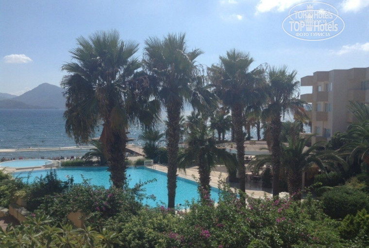 Доброго времени суток всем. Отдыхали двое взрослых и два ребенка 4 года и 13 лет. Приехали в отель ранним утром. От аэропорта до отеля, время в автобусе примерно 2,5 - 3 часа. Сразу нас отправили в ресторан, на завтрак. По приходу в него, нас охватил ужас. Есть просто было нечего. Если честно хотелось развернуться и ехать обратно, к себе домой. Спросив у отдыхающих уже там туристов про еду, услышали такую фразу "голодными не останетесь". Эта фраза сопровождала нас весь отдых. Номер ждать долго не пришлось. У нас был family room. В основном здании. Все достаточно чистенько, номер находился этажом выше ресепшена. Вид был частичный на море. Большим плюсом был тот факт, что попали мы на отдых в период большого мусульманского праздника. Отель заполнился под завязку, и питание в связи с этим улучшилось. Аниматоры большие молодцы, развлекали и детей и взрослых. Не навязчиво. Природа там конечно и климат изумительные. В море на самом деле как и писали ранее в отзывах, подплывают небольшие рыбки и кусают тех кто долго, неподвижно стоит в воде. Но за все время пребывания никого до крови ни одна рыбка не укусила. Море теплое. Ах вот еще что... Да да товарищи комары там есть, и при чем в номере на вставленный фумигатор в розетку они не реагируют, как летали так и летают. Пару раз в номере укусили детей. Осы на летней веранде в ресторане, утром и в обед, с маленькими детьми вам поесть спокойно, не дадут однозначно. Поэтому все время кушали в закрытой части ресторана. Поразило то, что чай был только черный и только из чайников, разбодяженных водой если он там заканчивался. Масло сливочное появилось только в конце нашего отдыха. Все фрукты мыла, прежде чем дать ребенку. Были дыни, сливы, виноград двух видов, арбуз, яблоки. Естественно всю пишу пробовала сначала сама. Слава Богу за все время пребывание в отеле ничем не заболели, ничем не отравились. Кстати отель находится очень далеко от населенного пункта, то есть придется выбирать транспорт. Есть бесплатный автобус от отеля до Мармариса. Мобильный интернет, мегафон там не ловит вообще, не тратьте деньги на него и на его роуминг. Вай фай ловил только на ресепшен, и почему то в зоне амфитеатра. Вай фай работал с перебоями. У отеля огромная территория. Несколько бассейнов. Четыре пирса. Каждый найдет себе место на пляже. Даже в период когда, отель заполнен. В общем могу сказать, совсем с маленькими детьми ехать в этот отель я бы не рекомендовала. А общее впечатление от отдыха хорошее. За те деньги, которые мы заплатили. Мы отдохнули хорошо.