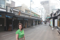 Приехали мы в отель в 19 часов после экскурсионного дня. Оперативно заполнили регистрационные карточки, получили ключ- карты от номеров и поднялись в свой 713 номер. Номер небольшой, но какой- то «миленький». Есть совершенно все необходимые для комфортного проживания условия. Холодильник, телевизор, сейф, естественно кондиционер, фен. Также в номере есть чайник, пара чашек, несколько пакетиков чая ( вернее для нас это похоже на наваристый куриный бульон, но у японцев это один из видов зеленого чая). На стене часы и зеркало, возле кровати висит барометр, с бок стола крепятся тапочки, ложечка для обуви... одним словом предусмотрена каждая мелочь. У нас в номере была одна большая ДАБЛ кровать. Места в номере совсем не много, поэтому на столе лежит памятка, в которой написано, что пространство под кроватью вы можете использовать для вашего багажа. И точно, наш довольно большой по габаритам чемодан хоть и впритык, но легко зашел в «подкроватное» пространство.