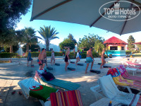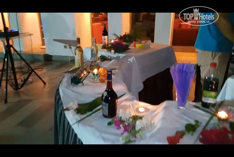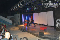 АННИМАЦИЯ просто класс! Ребята молодцы! У бассейнов развлекательные мероптия, танцы, аэробика, дартс, соревнования в бассейне. На пляже волейбол. Вечером на веранде накрывают красиво бар, с лепестками цветов, свечи(жаль фото мутное, это скриншот с видео), тут же танцы и красивый вид на бассейн. В амфитеатре отеля в 21.45 представления разные, фаэр шоу. До этого детская дискотека. Один раз была пенная вечеринка в бассейне и долго работал аква парк, даже не знаю во сколько закрылся, мы в 00 спать ушли. В темноте прикольно кататься с горок, и приезжих уже нет. Марио, Пикпчо, классные ребята! С Марио сдружились, теперь на фейсбуке списываемся.