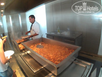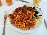 ПИТАНИЕ... Мы не зажранные, но так себе. Завтраки приелись конкретно. Из основного яичница-глазунья (кто не любит сильно сырые желтки просит повора перевернуть её. Нормально получается) и блины. К блинам был топленый шоколад, наверно наша оленка))) Каша для меня это было что то страшненькое - рис в непонятной воде с каплей молока, пробовать не стала. Много йогуртов, джемов. Кексы, круасаны. Сыр, колбаса. Но каждый завтрак одно и то же. На обед рыбу жарили на гриле. Курица, телятина. Но часто мелко прорезана в соусе. Курица иногда только голенями была.Всегда пицца. Оливки, маслины, каперсы, овощей много. Разные соусы. Я в тарелочке смешивала себе овощной салат, заправляла соусом. Много сладостей, пироженки, абалденные муссы. А на ужин ещё разнообразнее слалкое. Хотя мне бы лучше сладкое на завтрак...поздно не привыкла... Ужины самые вкусные и по разнообразнее. Картошка фри, креветки были пару раз, пару раз морепродукты с овощами. Интересная их "шаварма" - просто курица с овощами, но вкусная. Некоторые блюда острые. Фрукты были дыни, без вкусные арбузы, один раз персики. Из ресторанов ходили в итальянский - та же столовка, только без толкучки. И там был виноград. Так то же самое. Понравился ливанский, сходили 3 раза. Красиво стол накрыт, с цветочками. Но там не шведский стол. Приносят блюда сами. На разогрев овощной салат, на второе картофель, похожий как по-деревенски, только кубиками, и курицу. На десерт пресный арбуз, дыня и гигантские сливы. В отеле очень много отдыхает с детьми. Специального детского меню я не увидела. Алкоголь разбодяжен водой. Это точно, один из сотрудников проговорился))) Но мне понравился коктейль "секс на пляже", сладенький. Ещё у них есть в бутылках зелёный сироп, типо концентрата. Мы просили его с водкой смешать, привкус интересный получается. Один раз прикол был. Стоим у бара. Мужу говорю:" давай ром со спрайтом". Он отвечает: "не, давай водку с фантой". Я соглашаюсь. Мальчик на баре нас не понял, и смешал все 4 ингредиента в одном стакане. Мы в шоке наблюдали как он все смешал... глотнули, в итоге пить не стали. И тут опять таки, кто как настроен. Кто то заворчит, скажет что за тупые бармены, отраву налили. А мы просто поржали. Ну не понимает он по-русски, услышал "Ром спрайт водка фанта", и налил))) И как бы что-то не нравилось - и я и муж поправились на несколько кг.