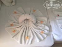 Отдыхали семьей с ребенком 5 лет в этом отеле во второй половине сентября 2016. Отель представлен двухэтажными зданиями. Мы приехали в 10 утра, но заселили нас в 13.30 только. Номер большой, двухкомнатный, чистый. Номер 14 :) Старовата плитка в ванной. А так в общем-то, все выглядит свежим. В номере была огромная терраса и вид на море. В каждом номере кондиционер, телевизор, фен, холодильник. В отеле все платно. Вай-фай 15 евро в неделю, 28 -2 недели. Пишут-один пароль на одно устройстао, но лукавят. Работали оба телефона на одном пароле. Полотенца на пляж -платно. Депозит 10 евро, замена 1 евро. Бред полный. Сейф платно- 3 евро /сутки. Грабеж!