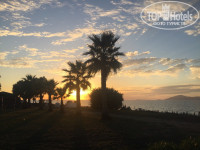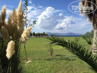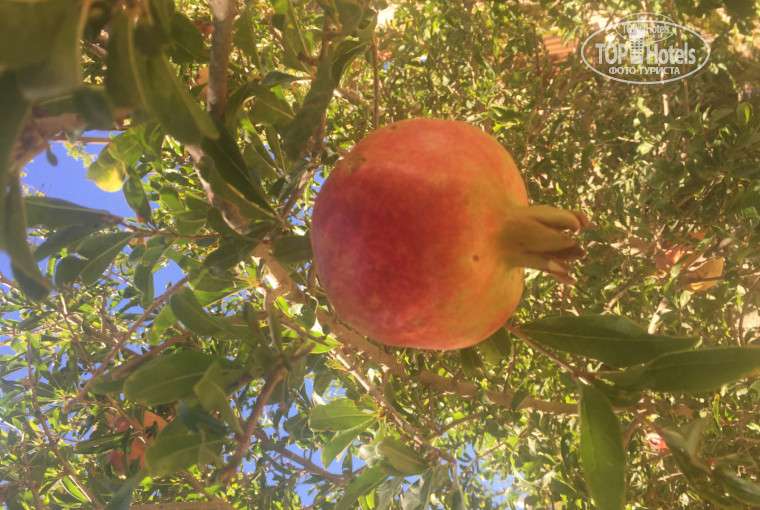 Территория отеля-большая, но не очень ухоженная( в сравнении с отелями крита и турции такого же плана) . То ли у них там сиеста целыми днями, то ли сезон заканчивается. На пальмах сухие листья кучами висят, увядшие цветочки есть. Не обстриженно. Но растут мандарины, гранаты ( которые уже созрели) , айва, оливки и много всего прочего. На территории отеля 2-3 детских площадки, минизоопарк-олени, ослик, козлики, кролики, птицы. Ходили кормить каждый день. Есть поле для мини-гольфа. Игра 3 евро.