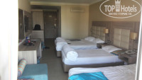 Прилетели с Тез тур, до отеля ехали почти три часа, это очень утомило. Приехали в отель примерно час ждали заселения, хотя тех кто позже нас приехали заселяли сразу. Номера мы попросили на дорогу, так как знали и читали, что вид на бассейн там будет очень шумно. Номера чистые, новые и комфортные, мы жили на 4 этаже. Убираются хорошо, только постельное меняли один раз всего. Лифт ждать очень долго, поэтому спускались пешком всегда. Еды много, но разнообразия нет, из мяса была всегда курица и иногда индейка... Но если во время не пришли к открытию ресторана, то останетесь голодными. Фруктов много, но тоже нужно успеть схватить. Территория отеля красивая и ухоженная. Пляж хороший, но лежаков мало и очень далеко от моря. Лежаки всегда были заняты, на них лежали полотенца туристов которые даже не приходили. Пришлось лежать как все остальные на песке возле воды. В барах вкусные соки, пиво, белис. Единственное грубый бармен в лобби, просто хам, он не слушает посетителей и может налить что хочет или вообще нахамить. Хорошая веселая анимация! Отель конечно не тянет на 5 ультра все включено, он хорошая 4))