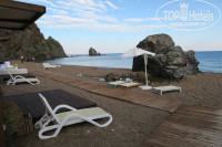 Море было кристально чистое, хотя частенько не слишком спокойное. Главный минус - это галька на пляже. Лучше иметь с собой спец. обувь для захода в море и купания.