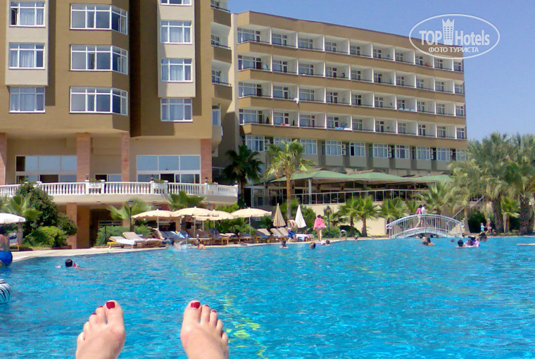 Территория.Очень красивая, ухоженная, зеленая, мне понравилось.Пляж - явно минус, я в агенстве просила песчаный, вход в море безобразный, крупные камни, поранила ноги, 2 дня пришлось купаться в бассейне,хотя я ненавижу запах хлорки.Впрочем, дитей много , их это не смущает, плещуться себе и радуються.Отель вооюбще семейный, молодняку будет скучно. Вывозили нас на дискотеку РобинГуд в Аланию - город красивый, панорама отличная, сама дискотека отстой, алкоголь еще дороже чем в московских клубах, дико приставучие турки и безумная теснота.Не советую.