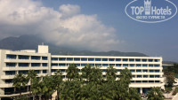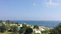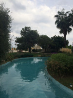 Достаточно большая и зелёная. Отель имеет 2 корпуса и несколько вилл (второй корпус, виллы и 5 этаж основного корпуса ремонтируются). За главным корпусом есть пруд с рыбками, а также клетки с птицами. Также расположено поле для мини гольфа, корт для большого тенниса, а также площадка для стрельбы из винтовки и из лука (винтовка около 11, лук около 15). Безумно понравилось сочетание тропических деревьев рядом с хвойными. Нашли деревья с гранатами и апельсинами. Все очень ухоженное. Есть пруд с маленьким фонтаном, на который можно смотреть за ужином, вечером подсвечивается (как и бассейны, кстати).