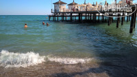 Пляж и море шикарны, пляж очень ухоженный, чистый, просторный, в любое время есть свободные лежаки. Очень удобный и красивый пирс.