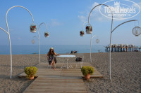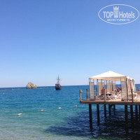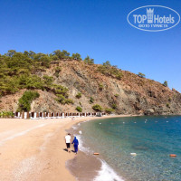 ПЛЯЖ. Песчано-галечный, ближе к горе заход приятней и отлично для маленьких деток, море шикарное чистое бирюзовое. Карточек для полотенец нет. Пришел на пляж, взял полотенце, постелил. Но, иногда, не поймешь, или человек оставил полотенце и ушел или занял шезлонг… Качество полотенец желает лучшего и дырявые пора бы уже куда-то отправить, а еще лучше их полностью поменять на более качественные и по цвету веселее) На пляже есть Библиотека (стеллаж с журналами и книгами), можно что-то выбрать почитать – отлично. Очень вкусное гезлеме пекут 2 прекрасные женщины-турчанки. Как они раскатывают тесто-это надо видеть. Молодцы на 5+++