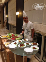 ГЛАВНЫЙ РЕСТОРАН. Вот здесь я бы хотела акцентировать внимание Руководства отеля, так как именно это место оставило «особенное» впечатление и больше напоминало не ресторан, а общественную столовую. Последний отель до Rixos Premium Tekirova в котором мы отдыхали семьей был Vogue Avangarde, к сожалению, он пока закрыт, но по некоторым параметрам он был выше Риксоса. В Воге ресторан был очень мудро спланирован по разным залам и не было шума, гама и толпы, как в Риксосе, прекрасное обслуживание и выбор, у Риксоса с этим пока похуже… На террасе в Риксосе свободные места было не просто найти, так как отель в наш период на удивление был заполнен под завязку. Питание, сначала было довольно хорошим (отличная выпечка, сладкий стол, фрукты, неплохой выбор сыров, курица, индейка, телятина, рыба Сибас на гриле, кольца кальмара с овощами, был диет.стол, отдельный стол суши, детское питание – смеси, йогурты, кефир, в маленьких пакетах с трубочками молоко, какао, баночное питание если и было, то его очень быстро разбирали, утром давали 3 вида фрешей, разные каши (геркулес, манка), омлет. Но не хватало морепродуктов, таких, как красная рыбка, креветки:) Возле каждого основного блюда стояло электронное табло с описанием: сколько Ккал, жира, глютена и пр. - очень удобно, кто следит за фигурой или на безглютеновой диете. По прошествии 6 дней о чудо)) в отель приехала большая группа турков-бизнесменов на конференцию и питание стало почти премиум – целые огромные казаны красной рыбки, фаршированные перепела, выбор блюд увеличился на 20% минимум точно, правда креветок за 9 дней так и не дождались, вроде бы раз где-то и были, но сразу закончились, ну да ладно). На лобби не весь персонал говорит на русском и английском, 2 раза девушка просто забывала принести кофе…по прошествии 30 минут я подхожу, а она говорит – сорри, я забыла…И я ее по-человечески понимаю, персонал сократили и они не успевают обслужить быстро такое кол-во человек и это очень ощущалось. Порой, я сама убирала освободившийся столик на террасе, так как мне так было проще и быстрее, чем ждать пока из зала освободится официант или принести вилку или ложку, не проблема вообще, корона не спадет :) но это не уровень премиум. Я очень верю, что на VIP виллах все по-другому и у них свой личный ресторан с высоким обслуживанием, в наш период там отдыхала с семьей известная украинская певица и уже не первый раз в данном отеле. На отдельно расположенных VIP виллах царит настоящий Премиум класс, если вы можете себе позволить этот уровень, то с удовольствием рекомендую бронировать именно такие виллы, преимуществ масса! Также, у меня была возможность посмотреть 2-х этажные виллы с бассейном, как отдельные номера на 1 и 2-м этаже, так и одна 2-х этажная вилла - отлично, кто любит тишину и уединение+сразу в бассейн - можно смело брать!