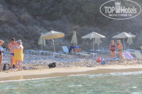 К пляжу надо перейти через дорогу,можно по подземному переходу.Не бойтесь ступенек (мы насчитали 157).Хорошая тренировка и не так страшно.))) Если пройти налево от отеля(если стоять к нему спиной),где табличка пляж "Вулизма",есть пологий спуск. Там есть лежаки и зонтики,платно: лежак - 2,5 евро,зонтик -2 евро. Когда мы приходили после 16 часов,никто уже денежки не собирал.)