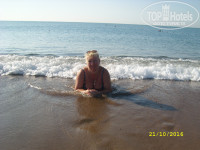 Пляж хороший, песочный. В воде стоять можно приблизительно 2 метра от берега, потом плыть. Но из воды не хочется выходить. Настолько море было гостеприимным.