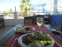 С утра пошли на завтрак. Еды в изобилии, выпечки много. С питанием проблем не возникло. Из ресторана, конечно же, на море. Расписание лодки я бы немного подкорректировала, сделала бы почаще, но, наверное, для отеля это не целесообразно. Первый рейс в 9 утра, а следующий в 10-30. А в 12-30 лодка увозит уже на обед. Кто любит поесть, тому загорать у моря некогда. Я пару раз съездила на обед и больше не поехала, не хотелось терять время. Море было обалденным, погода порадовала (температура днем 30-31, море 25-26). На территории отеля есть много бассейнов, многие туристы там и отдыхали. Территория большая, зеленая. Здесь претензий к отелю нет. Есть две горки. В октябре работало всего два бара (не считая ресторанного во время питания), хотя их там больше, один бар у главного ресторана, второй на пляже.