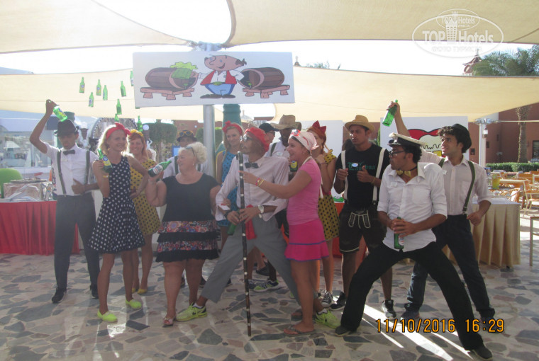 Отдыхаем в Египте 9 лет в разных отелях. В целом кризис чувствуется в последние годы, но этот отель порадовал. Одновременно приехали 32 человека, но заселение прошло быстро. Первый раз отдых в одиночку, и скучно на было. Территория отеля большая. Анимация активная, разнообразная, такой набор спортивных занятий есть не во всех отелях. Единственное пожелание - т.к. в октябре темнеет раньше и ужинают гости довольно быстро, раньше начинать вечернюю медитацию возле пляжа и вечернее шоу. Питание качественное и довольно разнообразное, официанты приветливые и быстро убирают посуду, есть детское меню, большой выбор чая (черный, зеленый, каркадэ, ромашка, мята, корица, анис). В 25 корпусе уборка была хорошая, набор косметических средств обновлялся (мыло, шампунь, гель для душа, крем для тела). Мебель не новая, но все в рабочем состоянии, ничего не выпадает, достаточно полок и вешалок, большой сейф. Не подключен был телефон в комнате, а в санузле работал. При заезде в качестве приветствия в холодильнике банки с колой, фантой, спрайтом, в дальнейшем пополняется негазированной водой 0,5 л. Если не хватает воды, доставленной в комнату, можно взять в любом баре, что очень удобно (редко такая услуга есть в отелях и в неограниченном количестве). На пляже песок, удобно отдыхать с детками, есть отдельная зона отдыха без детей. В море есть кустики кораллов, не очень много, но рыбок привлекают, периодически приплывают большие рыбы и мурены. В октябре людей в отеле было меньше, чем летом, часть пляжа перекрывали для ремонта и укрепления зонтиков, но свободных лежаков хватало, если пройти по пляжу. Можно днем гулять по побережью всей бухты и соседних отелей. Несмотря на немалое количество яхт в бухте, вода чистая. На территории следят за ландшафтом, работает в течение дня большой штат садовников, но отдыху это не мешает. По графику работает аквапарк.