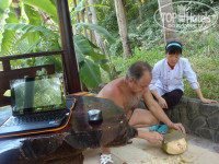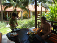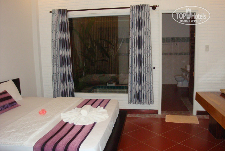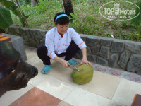 Отдыхали в ФАНТХИЕТЕ сентябрь-октябрь 2014 ,были 6 дней,в море не зайти -горячее,медузы. Хозяин русскоговорящий! Жили в бунгало,доплатили 100 баксов. .Анимации нет.Территория маленькая ,уютная!Народа было мало,как будто одни!На завтрак не ходили.Питались в кафешках,найти можно что покушать.Сам отель утопает в зелени,СКАЗКА!!!Приятный персонал!Нашли кокос на территории и не знали что с ним делать?Девушка из ресторана увидела и пришла на помощь(на фото).Потом 6 дней в Нячанге,там море было другое-небольшие волны и приятная прохлада.Еды всякой полно!Питались сами.Ездили по экскурсиям ,оч всё понравилось,опять же было мало народа !