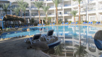 За границей первый раз. Поэтому роскошью и помпезностью заграничного отдыха не избалованы. Все казалось сказочным и удивительным. В отель приехали вечером, нас быстренько заселили и отправили ужинать. Номер хороший дали, подуставший, но хороший, если захотеть, можно найти к чему придраться. Но нас все устраивало. Приносили каждый день бутылку воды. Каждый день убирали. Большой плюс - это большая территория отеля. В городе спокойно не погуляешь, продавцы прохода не дают, очень назойливые. А вот на территории отеля гуляли в тишине и спокойствии. много зелени, много цветов. Прекраснейший вид на море и горы. Питание очень понравилось. Конечно деликатесов типа омаров, креветок, красной рыбы не было. Но питание было на достойном уровне. Большой ассортимент еды. И главное фрукты: финики (свежие, первый раз такие ела, очеееень вкусно), апельсины, мандарины, бананы, дыня, яблоки, хурма (тоже очень вкусная и отличается от той что в Украину везут), инжир, виноград. У бассейна и на пляже тоже можно было подкрепиться (по графику в определенные часы). Так же на пляже были в баре соки, чай, кофе, коктейли из местного алкоголя. У бассейнов и на пляже выдавали полотенца, что очень удобно. Лежаков на пляже не много (по соотношению до количества номеров в отеле), но учитывая что отель был заселен на процентов 20-30%, то лежаков всем хватало, еще и много пустых всегда оставалось. До пляжа надо было пройтись. Выйти из отеля, перейти дорогу. ну минут 7 ходу. Кому-то может не совсем удобно, но мы в этом проблемы не видели. Море обалденное, очень теплое, часами не вылезали из воды. Вход в море песчаный (без тапочек были), но местами есть осередки кораллов. Ныряли с масками. Очень понравились рыбки, самые разнообразные, большие, маленькие, прям перед лицом проплывали. Это вообще вау было. Персонал отеля приветливый и милый. Народу в отеле мало было, поэтому к каждому гостю было достойное внимание. В целом отдыхом очень довольны. Отель шикарный, никаких проблем не возникло. Хотя все зависит от уровня "избалованности" туриста. Может быть, когда-то, побывав в лучших местах, познав лучшие условия, мое мнение измениться. Но на данный момент, в сравнении с украинскими морскими курортами, это небо и земля)))