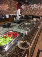 Питание в ресторане (это место нельзя называть рестораном!) - чисто символически, толпа людей бежала к открытию ресторана , хватали все подряд. овощей было очень мало помидоры ( черри были первые 5 минут после открытия ресторана, потом никто не выносил), огурец, перец..... из мяса: фаршированный перец, тушеное с картошкой, курица - гриль. печень на гриле (даже коты не ели, она была резиновая), рыба - на гриле (ужасного качества, всегда было достаточно. т.к. никто не хотел ее есть). За омлетом очередь, за капкейками - очередь. Варенье - один сироп, цукатов почти не было