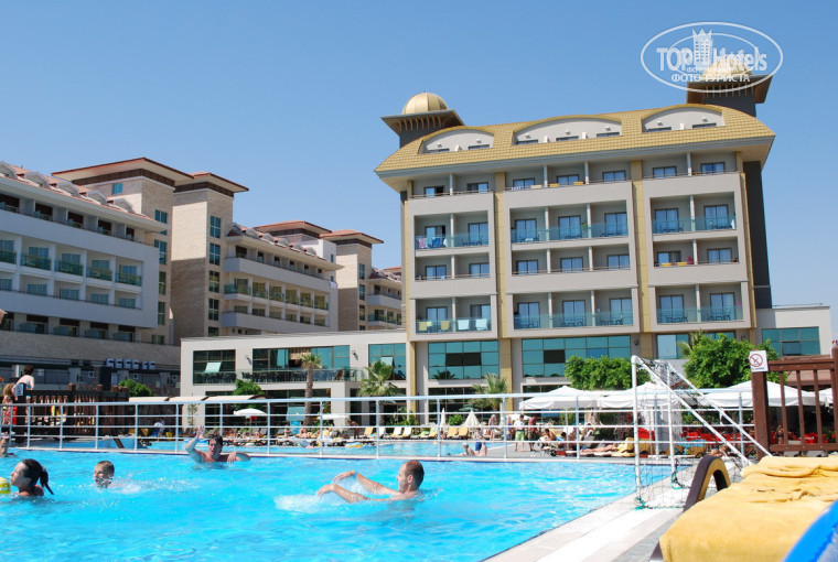 У отеля территория маленькая, но красивая, зеленая и цветущая. На территории один большой бассейн 900 м2 еще один поменьше, бассейн с горками и детский лягушатник. Бассейны хорошие, чистые. За территорией вдоль отелей и пляжа тянется длинная, красивая, мощеная дорожка, окруженная пальмами и разными «заморскими» растениями. В отеле несколько ресторанов la-carte: итальянский, османский, средиземноморский - рыбный, китайский, барбекю. Мы были в китайском – понравилось, друзья были в итальянском им тоже понравилось.