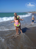Море: вход в море бетонные плиты, поэтому заходили слева после флага, там песочек и очень хороший вход, лежаков всегда хватало.
