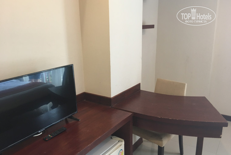 Ужасный отель! Полнейшее несоответствие цены и качества номеров. Нас заселили в комнату 204. И надо было видеть ужас на нашем лице от номера: плесень на стене, совмещенной с ванной; полки висящие на одном шурупе, того и гляди упадут на голову; сантехника течёт; потолок в ванной с огромными подтеками; мебель пошарпана и с "боевыми ранениями" от горячих стаканов; стены в непонятных пятнах, еще и грязно-серого цвета. Убожество. В номере песок оставался на плитке после уборки, постельное белье было с пятнами и полотенца иногда тоже. Тихий ужас. Еще и номер нам менять отказались, сказав, что всё занято. Причем на предъявы о том, что в номере вода от сантехники-просто протерли пол тряпочкой. Вообще ремонта в отеле давно не было, везде очень грязно, даже в холле. Про бессейн вообще молчу. Напольная плитка кое-где отстает от пола и потрескалась, особенно в столовой. Отдельный разговор про еду! Завтрак состоит на выбор из трех сетов: один блинчик (панкейк), 3 гренки из белого хлеба и яичница. И всё. При отдыхе в 11 дней, день на пятый уже не могла смотреть на эту еду. Яичница уже надоела, а панкейки были в наличии первые 5 дней. Выбирать больше было нечего. В номерах очень шумно,т.к. рядом находится рынок, который заканчивает работу примерно часа в 2 ночи. Потом собирают монатки, шумят, гремят. А еще рядом стоянка автобусов, которые всегда туда-сюда катаются. Итого-шум постоянный и нескончаемый.