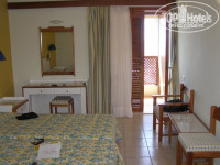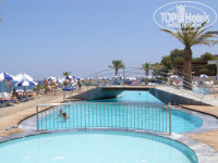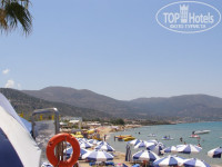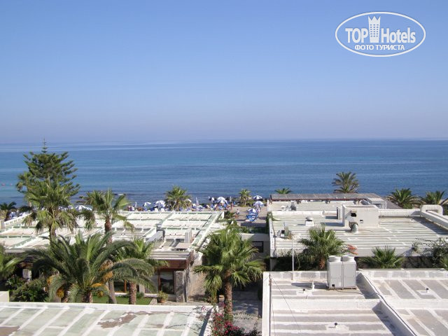 Отдыхали в конце июня - начале июля. Отель отлично расположен - прямо у моря. Территория отеля очень зеленая, цветущая. Пляж песчаный, лежаки и зонтики на пляже бесплатные. Море довольно чистое, хотя иногда по вечерам волнами приносило водоросли, однако к следующему утру их уже не было. У нас был уютный, чистый номер на третьем этаже с видом на море (если не хотите жить на первом этаже и с видом на сад, покупайте номер Front Sea View). В номере мини-холодильник, телевизор, сейф, в ванной - фен. Полотенца меняют, если бросить их в ванну. У нас изначально в номере не было пляжных полотенец, но после обращения на ресепшн их быстро принесли. Контингент - в основном немцы и итальянцы, но русских тоже много. Персонал по-русски общается в рамках своего профиля, т.е. дама на ресепшне могла пояснить только по поводу заполняемой при въезде анкеты, а пожилой сотрудник ресторана каким-то образом определял, что мы русские, и приветствовал нас выражениями "добрый дэнь" и "добрый вэчэр". Слышала еще, как официант в баре говорил по-русски, и детский аниматор - русская девушка. Вообще, греки очень гостеприимные и доброжелательные. Большой минус не столько отеля, сколько места - это, действительно, лихая английская молодежь, гоняющая на скутерах и квадроциклах денно и нощно, благо длинная прямая улица этому очень способствует. А в самом отеле было довольно тихо, по крайней мере соседей своих мы не слышали, да и музыка из бара до нас практически не доносилась.