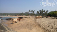 Что рядом: НЕРЕАЛЬНЫЙ ОГРОМНЫЙ ЧИСТЫЙ ПЛЯЖ !!! Была на трех пляжах (Палолем, Кола), но снова выбрала бы Агонду! Собаки и коровы не мешают, совершенно, пляж чистый и море суперчистое. Налево есть тихая бухта у скал, там нет волн, выбегают обезьянки, пасутся бычки...Направо можно идти до реки, рыбацких местечек. Вечером тоже гуляли по кромке океана, любовались на звезды, слушали живую музыку из кафе, любовались на огоньки свечей. Есть католическая церковь, мы смогли посетить мессу 24 декабря, посмотреть на традиции индийских христиан.