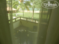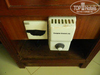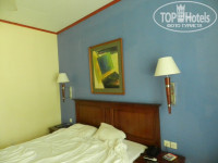 Номер довольно маленький, между кроватью и тумбочкой проход около 60 см. Дверь на балкон всегда открывалась со скрежетом, не смазан ролик, а из-за частого использования вывалилась штукатурка и образовалась сквозная сантиметровая щель, на улицу. Шторы и тюль в пятнах. Ни в одну розетку, кроме как в туалете, нельзя запихнуть вилку. Потолочный вентилятор не работал. Ржавый холодильник и светильники. В номере изредка короеды и муравьи приползали. Вода - то горячая, то холодная и разным напором. Нет набора для чая и кофе. По телеку нет русских каналов и т.д. Все нюансы, конечно, неприятные, но на это можно закрыть глаза.