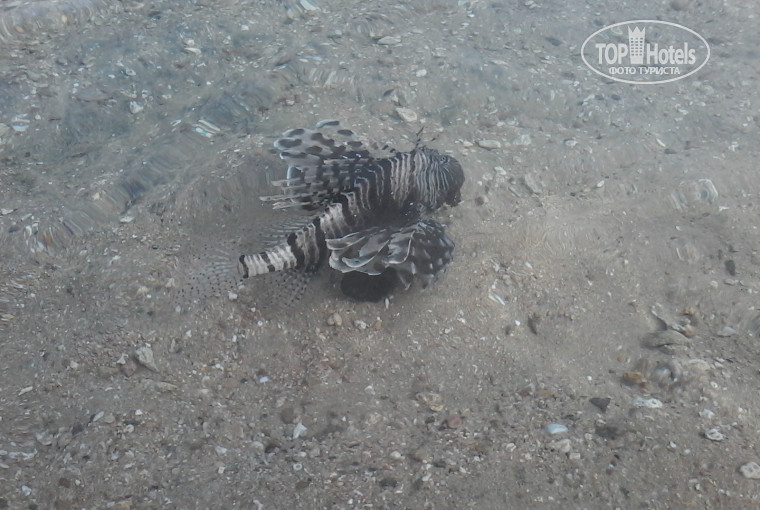 В 2016г. к берегу подплыла крылатка, довольно ядовитая и очень красивая рыбка(см.фото) Гости отеля, в том числе и маленькие сбежались посмотреть и даже протягивали к ней руки. К чести отеля спасатель потребовал всем немедленно отойти от воды и никого не пускал в море до тех пор, пока крылатка не ушла за пределы буйков.