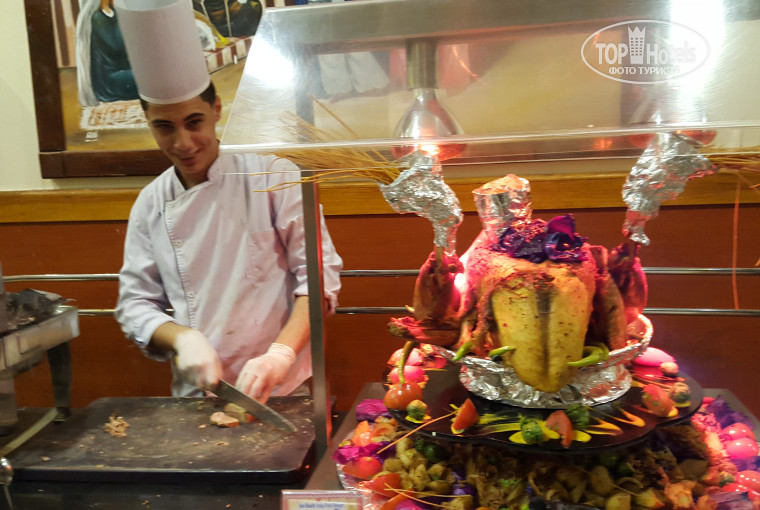 Питание было однообразное, за 14 дней очень приелось, и много блюд были ориентированы на местных отдыхающих египтян, их к слову , во время нашего отдыха было пол отеля, очень милые люди, от наших было больше шума. Вот от сладостей я была в восторге, вкуснейшие тортик, я сладкоешка, только б их и ела. Достаточно овощей и фруктов, дыня, апельсин, финик, гранат и др. Сходили перед отъездом во вьетнамский ресторан, ребенок остался голодный. Не советую. Вернулись обратно в главный ресторан доедать, хоть и нельзя.