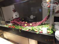Остальное в отеле по моему мнению- это большой жирный плюс. Еда просто отличная: курица, индейка, рыба - всё в нескольких вариантах: жареная, запеченая, тушеная. Море овощей: сырых, запеченых, тушеных и т.д. Макароны, рис, пицца, кус-кус и мн. другое. Десертов и выпечки огромный ассортимент, она не такая приторная как в Египте и Турции, а вполне такая европейская, круассаны на завтрак - стоит попробовать, вкуснейшие муссы и натуральное мороженое. Арбузов, дынь и персиков наелись в июне от души. Самое главное- никакой вонючей баранины- у меня с этим большая проблема, от одного запаха меня выворачивает, даже если продукты готовились на соседних сковородках, я уже не могу притронуться к еде. В выше перечисленных странах были проблемы в выборе еды. Из ресторанов А-ля карт, мы посетили все, стоит внимания только итальянский, после остальных хотелось в основной хотя бы за десертом.