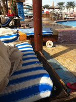 В ресторане еда однообразная: макароны в томатном соусе, в сметанном, с овощами. Курица, рыба всегда только во фритюре! Напитки разливают в пластиковые стаканы!!! Для 2-3х дней нормально, но дальше... Вино пробовала один раз - барматуха разбавленная. Заявленные тематические ужины ( мексиканской, греческой, украинкой, русской кухни ) НЕ отличаются ничем!! А, ну да, борщ был)) Однажды вечером был ужин на улице в восточном стиле. С музычкой, танцами. Хорошо , если бы народа столько не наехало накануне.