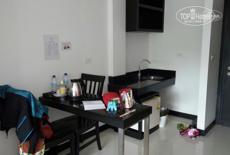 Сам номер большой,светлый,огромная кровать,телевизор где есть 3 канала на русском остальные иностранные,обеденный стол,шкаф для одежды,раковина для посуды,холодильник,сей,кондиционер,вай- фай.Немного смутила душевая комната.Стены как будто оштукатурены,но не покрашены,но это не так,они покрашены какой-то серой краской.что бы стена не промокала видимо у тайцев свои представления об интерьере.Ну и один небольшой минус,вечером немного не хватает освещения в номере,горят 3 небольшие лампы в потолке.Муравьев в номере не встречал,видел пару раз маленькую ящерицу,она живет где-то в трещине штукатурки стены около стола.Жене не сказал т.к она эту живность очень боится.Если будете жить в номере А-203 можете её увидеть.И готовьтесь каждое утро к пению петухов,которые живут рядом .Начинают орать около 6 утра примерно,потом замолкают.