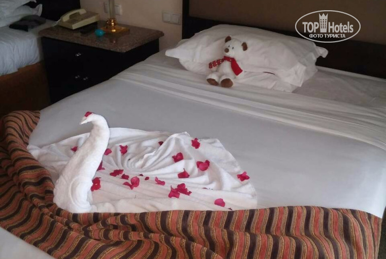 Отель классный, питание отличное,разнообразное, каждый найдёт то,что ему по вкусу,номера чистые, убирают каждый день и меняют постель и полотенца, даже пляжные меняют каждый день.Территория огромная,красивая и очень ухоженная.Коктейли делают классные особенно на терасе вечером, виски отвратительный. В столовой и на барах за 1$ вам будут целый день подносить то ,что вы пьёте.Если будут говорить что закончилось пиво(бармены любят экономить) идите на ресепшин и жалуйтесь, нам помогало.Ещё экономят на подогреве бассейна тоже нужно скандалить, вы за это платите деньги.А в общем всё отлично, всё понравилось, мы бы ещё туда с удовольствием вернулись!!! Отдельное спасибо аниматорам Соне и Лере.Это суперские две девчёнки , которые нам не давали скучать ни минуты, а детей мы целыми днями и вечерами не видели, они постоянно были с ними. Даже дома дети сейчас скучают по ним!!! Когда мы приедем на следующий год надеемся их снова там увидеть.