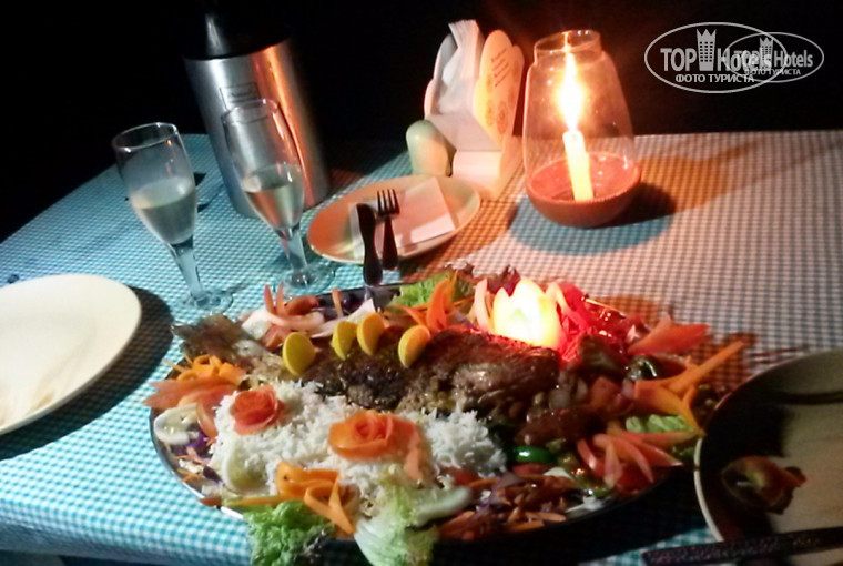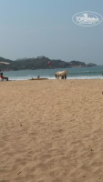 Номер нам дали сразу как только мы приехали. У нас был забронирован самый обычный номер в общем корпусе с кондиционером. Номер нам откровенно не понравился( Он был тесноват, кровать полутороспальная, раковина... та была, очевидно, для гномиков - больше похожая на плевательницу. Кондиционер висел прямо напротив кровати, поэтому настроить его так, чтобы он не дул на кровать, было невозможно) В общем, спустя два дня мы поменяли этот номер на отдельный деревянный домик с кондиционером (тот что напротив ресепшна). С доплатой разумеется. Доплата была приемлемая и составлялат разницу в стоимости номеров за оставшееся количество ночей. Это совсем другое дело! Комната побольше, кровать полноценная большая, толстый матрац, раковина нормальных размеров и кондиционер сбоку - можно поднять шторку вверх, и на кровать дуть не будет. Ещё пару слов по поводу сервиса: при заезде нам дали бутылку воды 1л. Это всё)) Ещё в номере есть пара чашек, пара ложек и небольшой поднос. Всё остальное: шампунь, гель для душа, мыло, туалетную бумагу (её, кстати, тоже не обновляют - 2 раза приходилось просить) нужно иметь с собой, либо купить в ближайшем магазинчике (палатке) у отеля, но так будет подороже. Мыло, например, стоит 30 рупий, маленькая бутылочка шампуня 70 рупий. Питьевую воду можно купить там же. О пляжных полотенцах там тоже ничего не знают) В номере даётся по одному полотенцу на каждого гостя. Но на пляже возле некоторых кафе есть лежаки и там на них вам постелят полотенца, естественно с условием, что вы приобретёте у них еду и напитки. Но своё полотенце (хотя бы одно на двоих) иметь не помешает, т. к. чистота выдаваемых полотенец вызывает большие сомнения))) Мне показалось, что вечером их собирают и складывают, а вечером просто раздают те же самые вновь прибывшим гостям)) нам приглянулось кафе Rico's - по пляжу влево, примерно напротив крупноговалуна в море. Хорошие цены, вкусная еда, приятные молодые ребята-официанты. Ещё вечером на ужин иногда ходили в другое кафе (название не помню). - По пляжу направо - первое кафе, которое выставляет столики на песок.