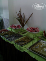 Не достаточное кондиционирование воздуха- очень жарко. Рацион очень скудный: из фруктов только нарезанные арбуз и дыни кусочками (для девушек из предыдущего отзыва по всей видимости это предел мечтаний))))))) Еще был нарезанный грейпфрут. Мясо курицы, один раз была свинина нарезанная тонкими ломтиками как в шаурму, остальные мясные изделия были из сои.Супы были через раз отвратительного вкуса. К раздаче очередь минут на 10!!!! Салаты были но очень бюджетные. Из овощей: помидоры, огурцы нарезанные ломтиками ну и зелень: салат, петрушка, лук. Сладостей было только 3-4 вида: желе, пирожные типа торта чародейки только без шоколадной глазури, и желе напоминавшее рисовую кашу. Напитки типа "зуко" и типовой набор алкоголя: пиво светлое, вино красное и белое похожее на уксус, и местные крепкие напитки.