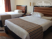 Номер просторный, у нас было 2 кровати (1,4м) спальное место, где хочу там и сплю :) В ванной комнате: душ, ванная, туалет (с биде). Полный комплект банных принадлежностей: гель д/душа, лосьон д/тела, шампунь, кондиционер на две персоны. По мере их использования пополнялись запасы, если не пополняли просили мальчика пополнить. Пляжные полотенца были в номере, в дальнейшем менялись у того же парня, обслуживающего наш номер. Вода 2 л пополнялась ежедневно. В номере есть чайный набор, также пополнялся по мере необходимости.