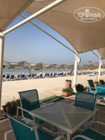 На пляже есть душ, туалет, кафетерий. Попить всегда можно, также там можно поесть, за деньги , кто HB или ВВ , кто олл на ресепшн нужно поменять обед в ресторане на обед на пляже.