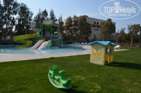 Территория. Когда мы отдыхали терртория отеля ещё тоько готовилась к сезону, пляж и пирс были не обустроены, бары у басейнов не работали. Правда когда на улице потеплело, а в отеле проходила очередная конференция у теплого басейна бар открыли. Если брать все теннисные корты, футбольные и гольф поля - территория просто огромная. Но я даже представить не могу где помещаются летом все отдыхающие которые не интересуются гольфом или теннисом. Мне показалось, что мало места и зелени. Нет, зелени конечно много, но она вся низкорослая, декоративная, а вот высокой тенистой нет. Вечером прогуляться негде. Есть отдельная детская зона с мини клубом, детскими водяными горками и достаточно слабой игровой площадкой. Когда мы были мини клуб как таковой ещё не работал. С немногочисленными деткаи занимались Инга - шеф детской анимации и Юля из взрослой анимации, замечательные девушки, каждый день дети делали интересные поделки. На территории много кошек. Все они достаточно упитаные, чистые, часто мы наблюдали как они охотятся на ящериц, которых на территори много. Есть там и живая черепаха. Все они милые и безобидные. Но есть на территории проблемма - вороны! Их много и они не упускают возможность распотрошить всё, что оставлено без присмотра. Ни раз наблюдала как они на террасе основного ресторана орудовали в тарелках. А у бассейна для них полное раздолье: чисы, орешки, фрукты оставленые на шезлонгах становятся целью этой заразы. И мы становились их жертвами.