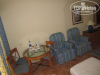 Нас заселили в номер Delux 1041. Расположение номера очень понравилось - в левом крыле корпуса на первом этаже (в лифте это уровень B, что на этаж ниже центрального корпуса – кнопка G). У номера прямой вид и выход к основному бассейну (1 минута) и далее к пляжу (2 минуты). В номере стандартно две полуторные кровати разделённые тумбочкой. Нам оперативно доставили две доп.кровати для детей. Ремонт и мебель в номере конечно не новые, но всё функционировало. Не хватало, может быть, только сушилки на веранде (есть правда специальная выдвижная верёвочка в ванной, но на улице всё сохнет в разы быстрее). Среди каналов ТВ было по несколько российских и украинских.